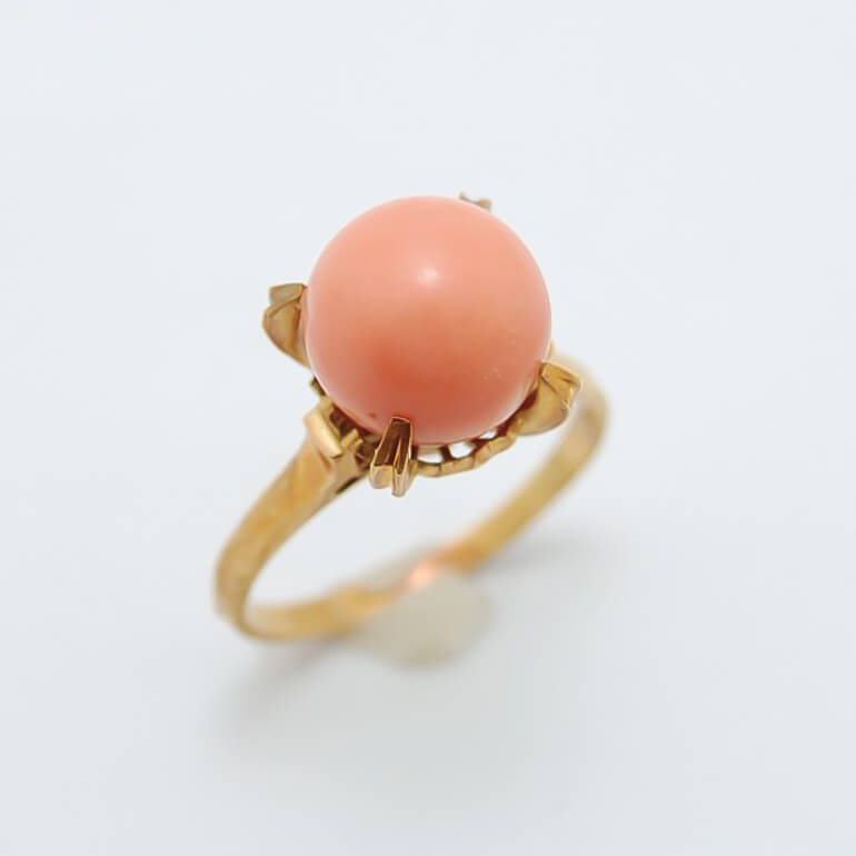 お預かりしたのは、見事な大きさの丸玉さんごの指輪です。